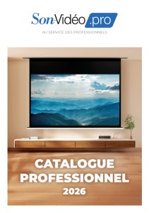 5 Sommaire Vidéoprojection Vidéoprojecteurs Vidéoprojecteurs UST Vidéoprojecteurs lifestyle Écrans de projection Supports de projecteur Ascenceurs projecteur Home-cinéma Amplis home-cinéma Barres de son Caissons de basse Caissons de basse encastrables Haute-fidélité Amplis hi-fi stéréo Enceintes connectées Enceintes satellites Intégration Enceintes encastrables Enceintes extérieures Téléviseurs TV QLED - NeoQLED - MiniLED TV Lifestyle TV OLED portable TV Direct LED - Mini LED Supports TV 6 9 12 14 16 17 36 40 44 46 52 18 19 20 21 22 24 28 30 35 Catalogue professionnel Son-Vidéo.com 2026 : Catalogue édité par Son Vidéo Distribution. SAS au capital de 153000€. RCS Créteil 432317980. 309 avenue du Général de Gaulle 94500 Champigny- sur-Marne. Crédits Photo : couverture: Lumene. Reproduction interdite. Descriptifs et photos non contractuels. Les prix sont fournis à titre indicatif. Prix applicables disponibles sur devis. Tarifs en euros HT au 1er avril 2026, sujets à modifications sans préavis.